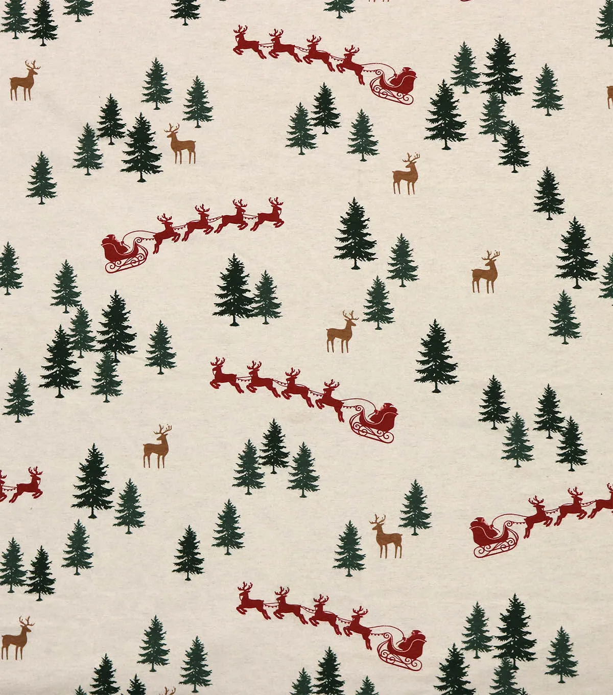Santa's Sleigh & Trees on White Super Snuggle Christmas Flannel Fabric