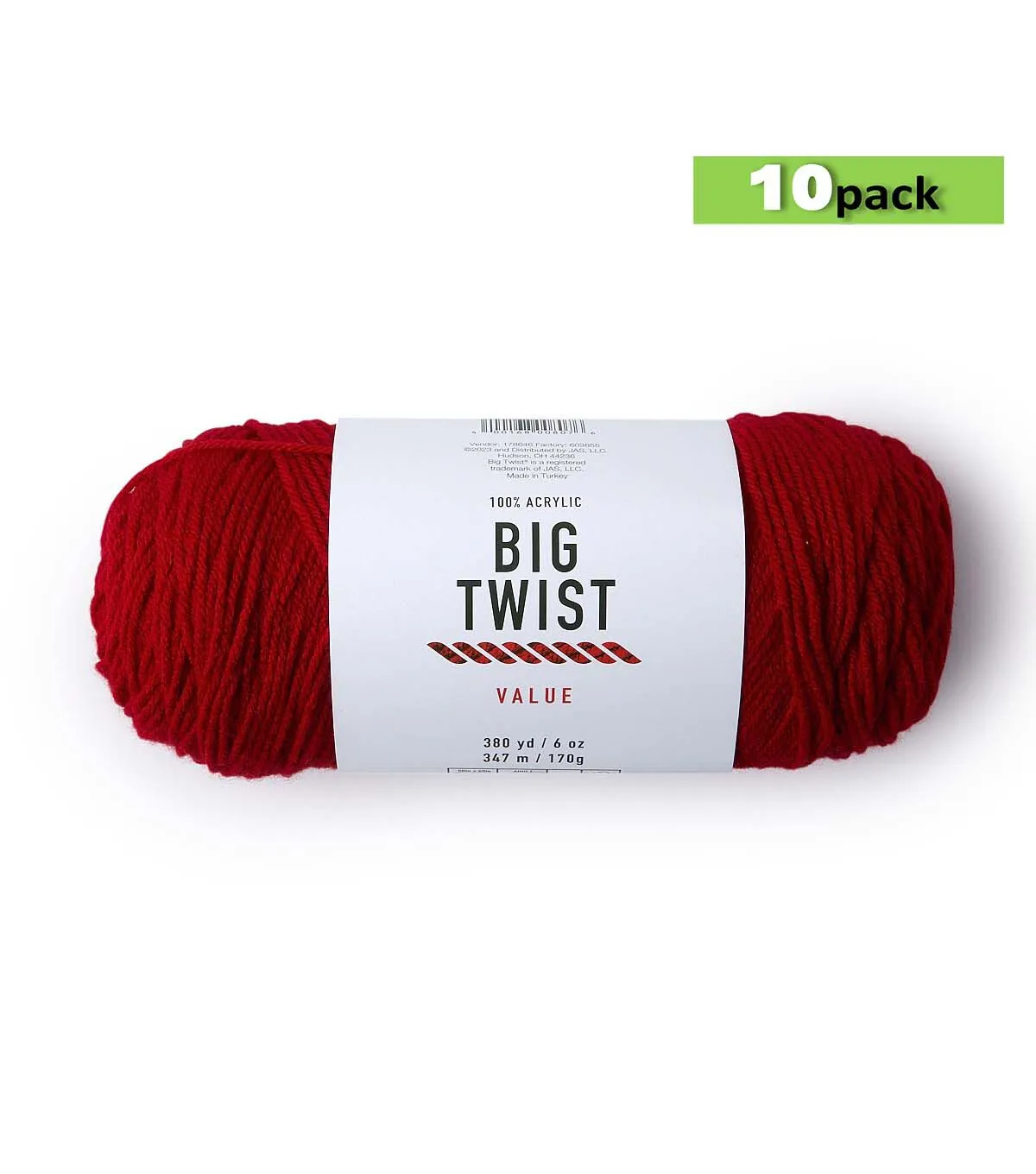 10pk Solid Deep Red Medium Weight Acrylic 380yd Value Yarn by Big Twist