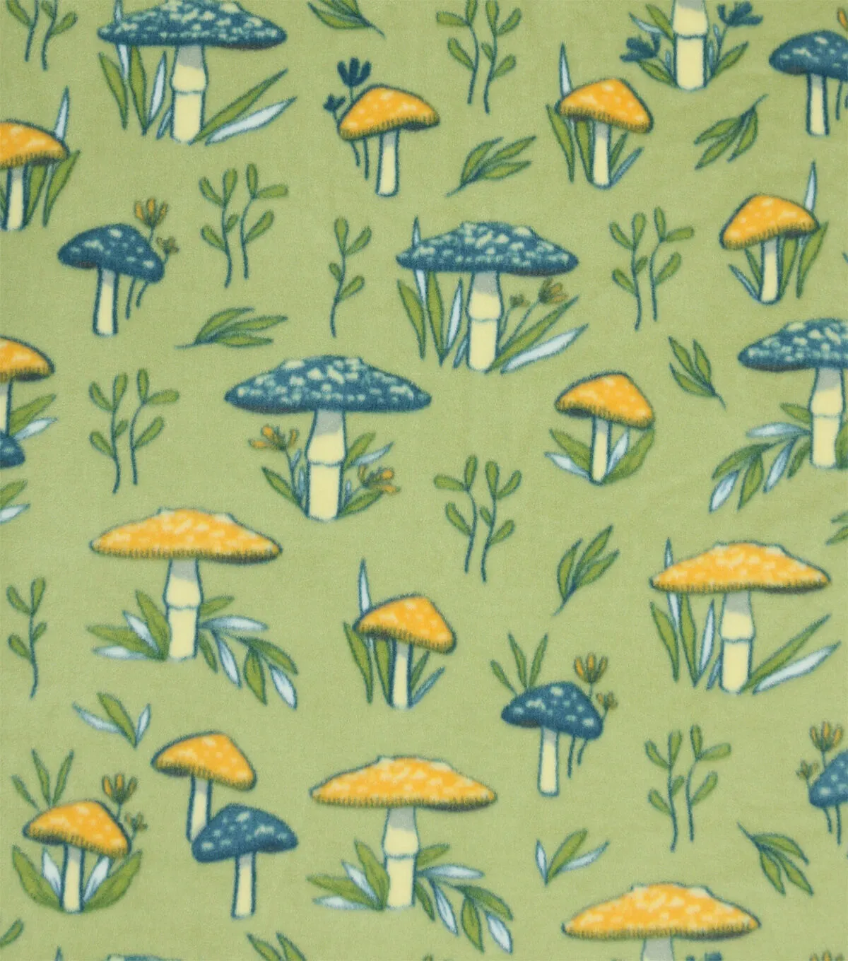 Mushrooms & Leaves on Green Anti Pill Plush Fleece Fabric