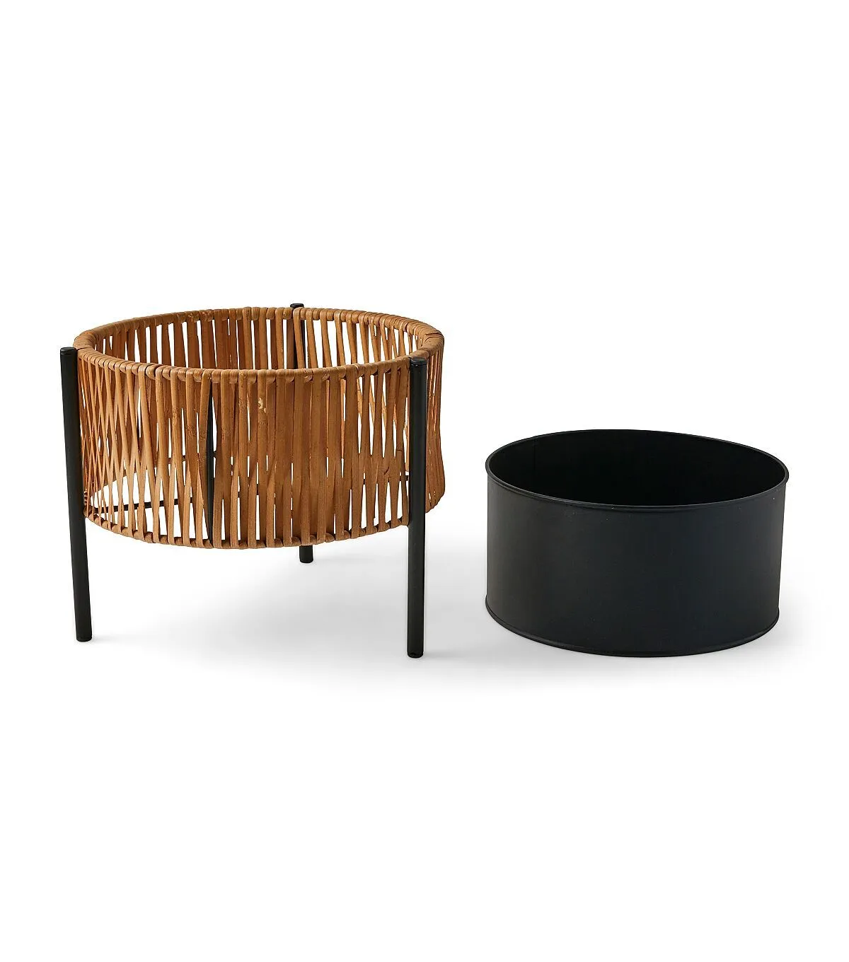 24" Spring Black Iron Planter With Rattan Accent by Place & Time