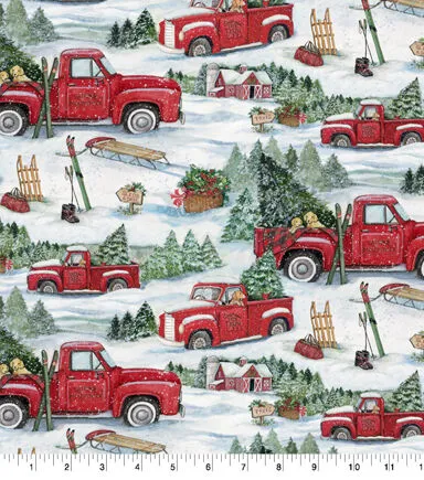 White Snowy Ski Day Christmas Cotton Fabric