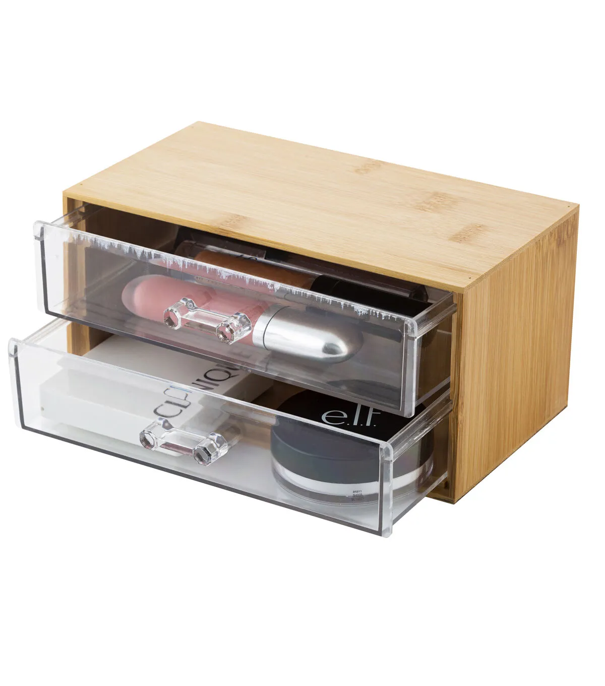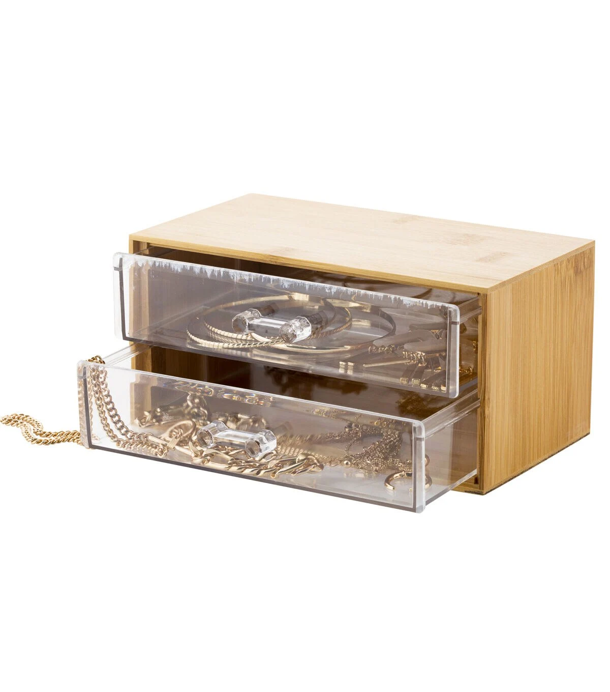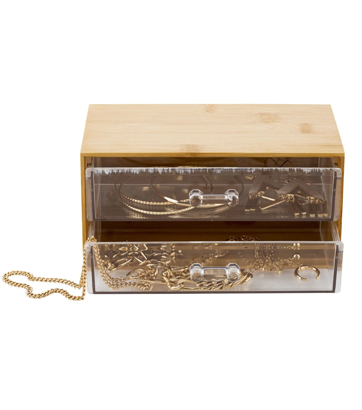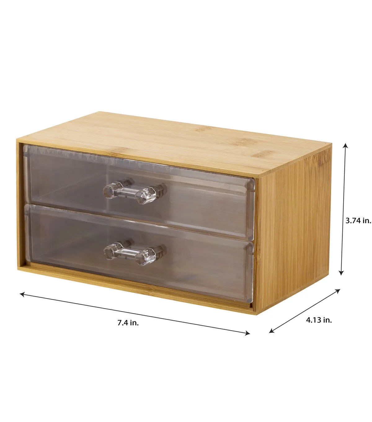 Simplify 7" Cosmetic & Jewelry 2 Drawer Bamboo Storage Chest