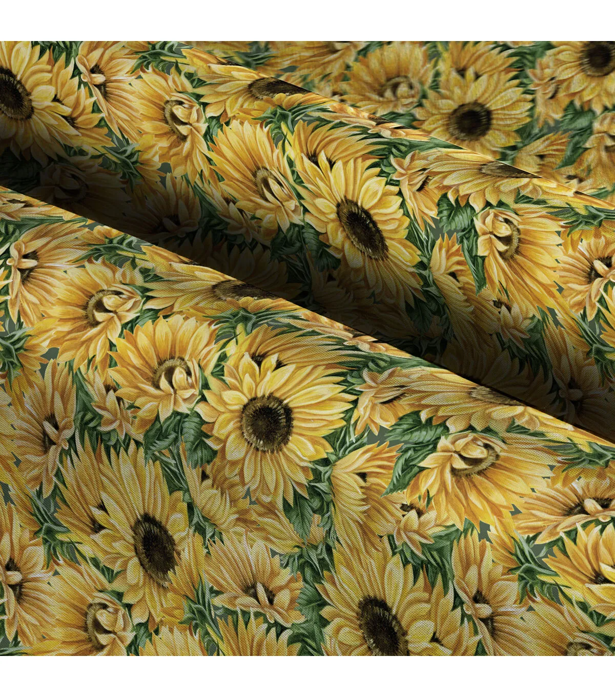 Yellow Sunflowers & Ferns Premium Cotton Fabric